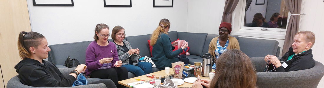 Liker du å strikke ? Strikkegruppa er en sosial arena på Røde Kors-huset i Tromsø for kvinner fra ulike kulturer. Her kan kvinner strikke og snakke norsk sammen over en kopp kaffe.